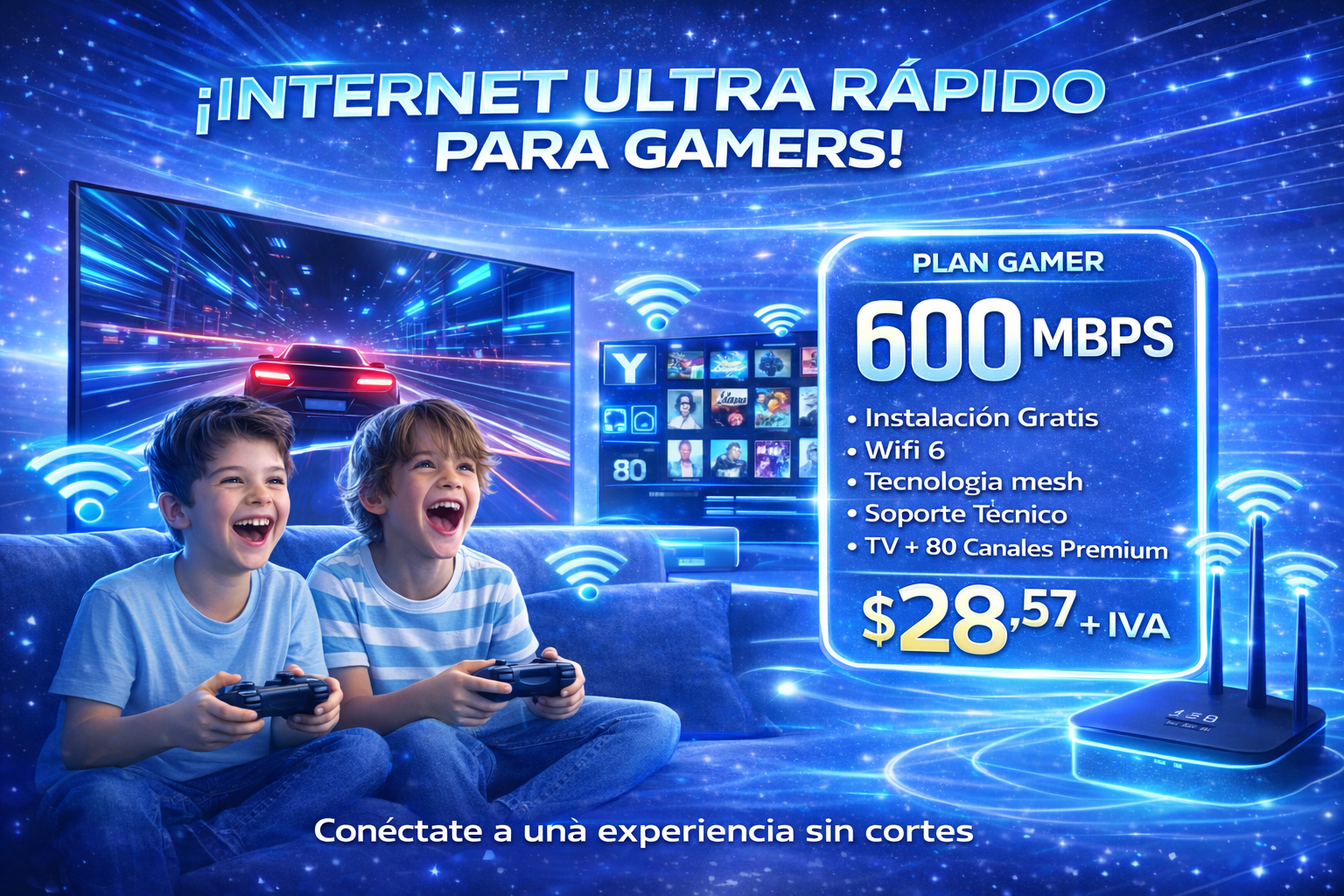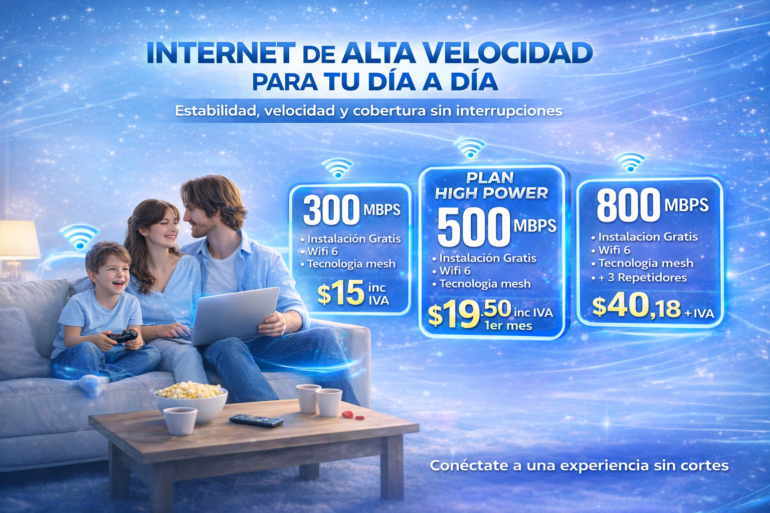 Accede a tus servicios de multimedia con una alta velocidad de internet.